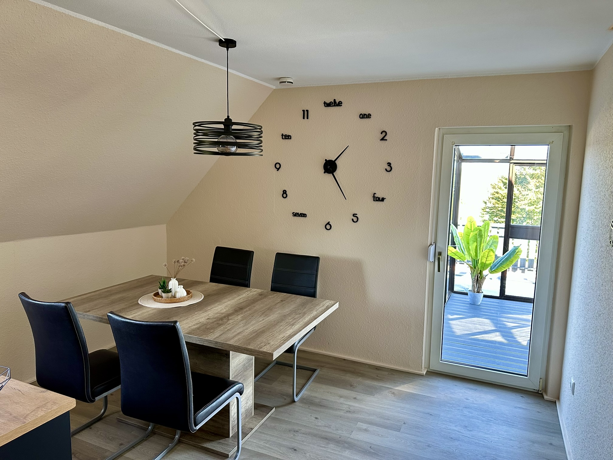 - Küche: Die voll ausgestattete Küche verfügt über alle Annehmlichkeiten, die Sie für Ihren Aufenthalt benötigen, einschließlich eines Herds, Backofens, Kühlschranks, Geschirrspülers und einer Kaffeemaschine. Ein Esstisch bietet Platz für gemeinsame Mahlzeiten. In der OG Wohnung haben Sie einen Zugang zu einem kleinen Wintergarten und der Panoramaterrasse wo Sie die frische Luft und die Aussicht genießen können.